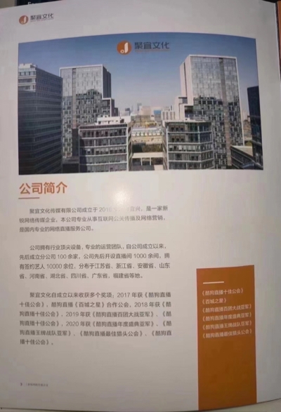 聚宜文化傳媒有限公司創(chuàng)立于2016年,是一家以新媒體娛樂,影視音樂為向?qū)?,以藝人包裝,視頻娛樂,網(wǎng)絡(luò)歌手,主持人為主的純綠色新型互聯(lián)網(wǎng)文化傳媒公司,專為有才華的年輕人打造的展示自我的直播平臺??偣疚挥诮K宜興,在無錫,揚(yáng)州、溧陽、安慶、池州、柯橋、衢洲,南充,巴中等地均設(shè)有分公司。歡迎來公司實地考察,公司提供專業(yè)設(shè)備,直播間,以及新人一對一專業(yè)培訓(xùn)。