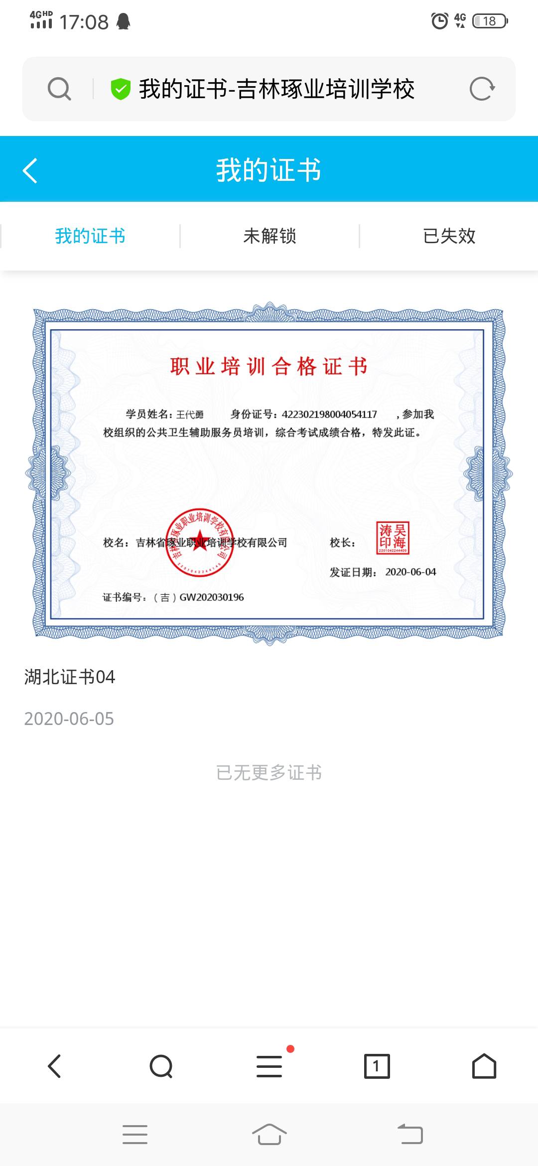 培訓內容:認真按時完成各科學業(yè),己獲相關證書。
